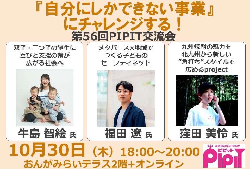 【詳細発表】『自分にしかできない事業』にチャレンジする!第56回PIPIT交流会(10月30日開催)