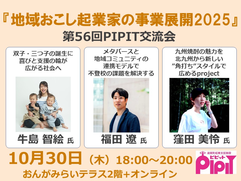 『地域おこし起業家の事業展開2025』 第56回PIPIT交流会(10月30日開催)