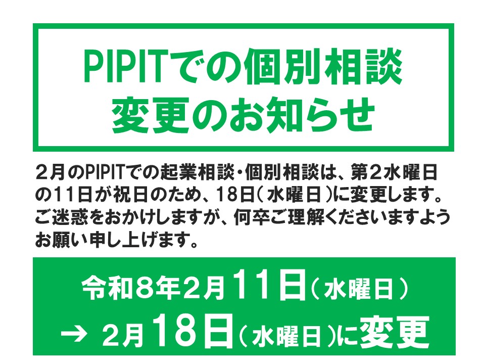 【お知らせ】2月のPIPIT個別相談変更のお知らせ