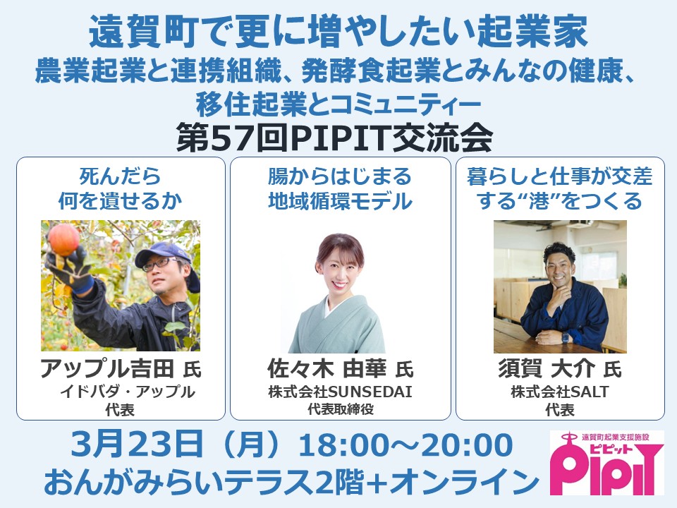 『遠賀町で更に増やしたい起業家~農業起業と連携組織、発酵食起業とみんなの健康、移住起業とコミュニティー』 第57回PIPIT交流会(3月23日開催)